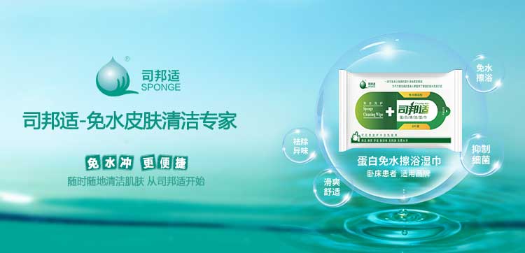 ? ? ? ?本公司研發(fā)的司邦適蛋白表面活性因子,不僅對人體皮膚及粘膜沒有刺激,同時具有對皮膚很強的清潔能力;可以祛除人體皮膚上的異味,并且具有較強的抑菌功效。使用后無需用水沖洗皮膚仍感到舒適爽滑;基于上述原因我們研發(fā)的司邦適免水清潔系列產(chǎn)品。主要適用于各種主觀或者客觀上不方便全身或局部皮膚清潔的人群。